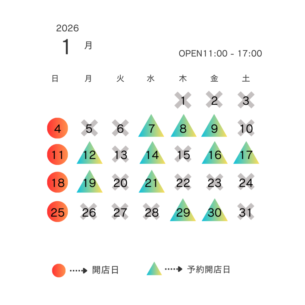 1月の店舗営業スケジュールです