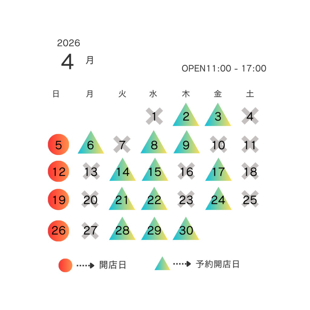 4月の店舗営業スケジュールです