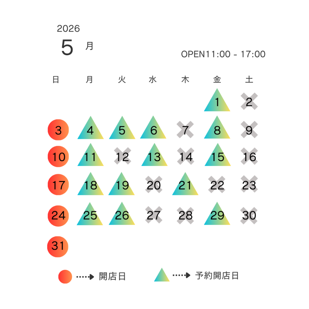 5月の店舗営業スケジュールです